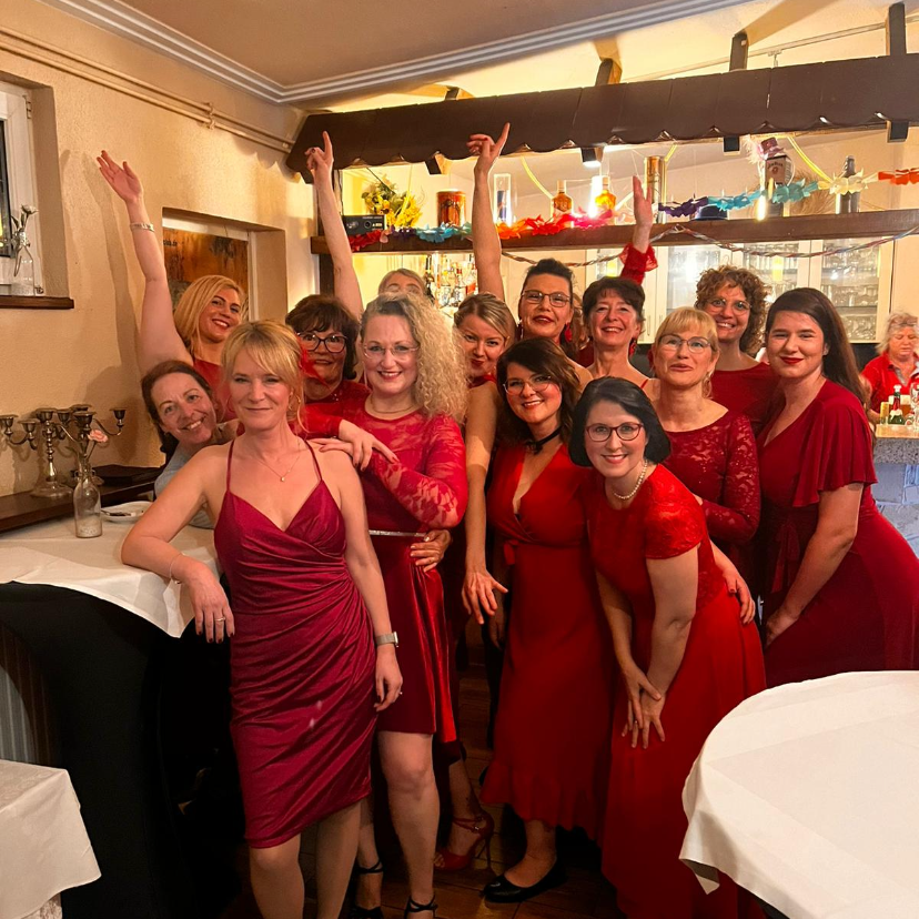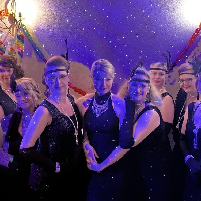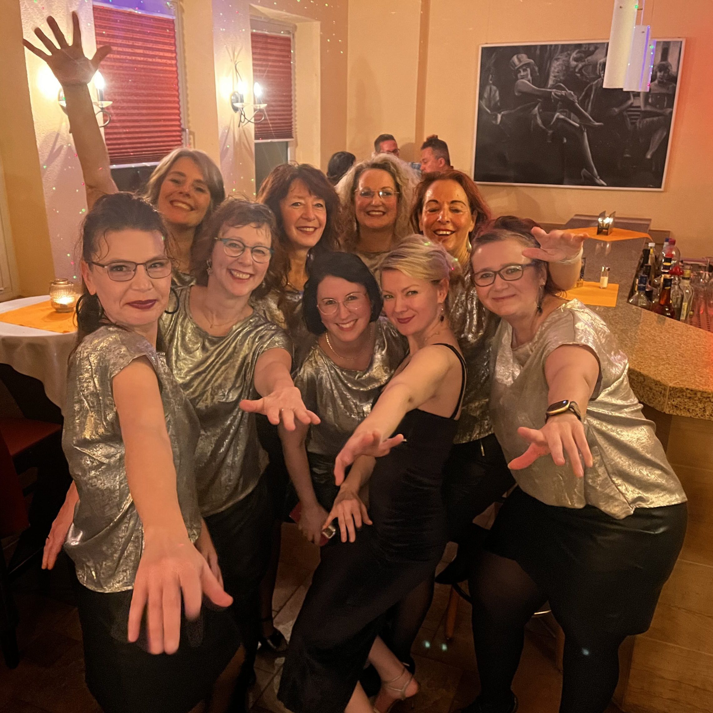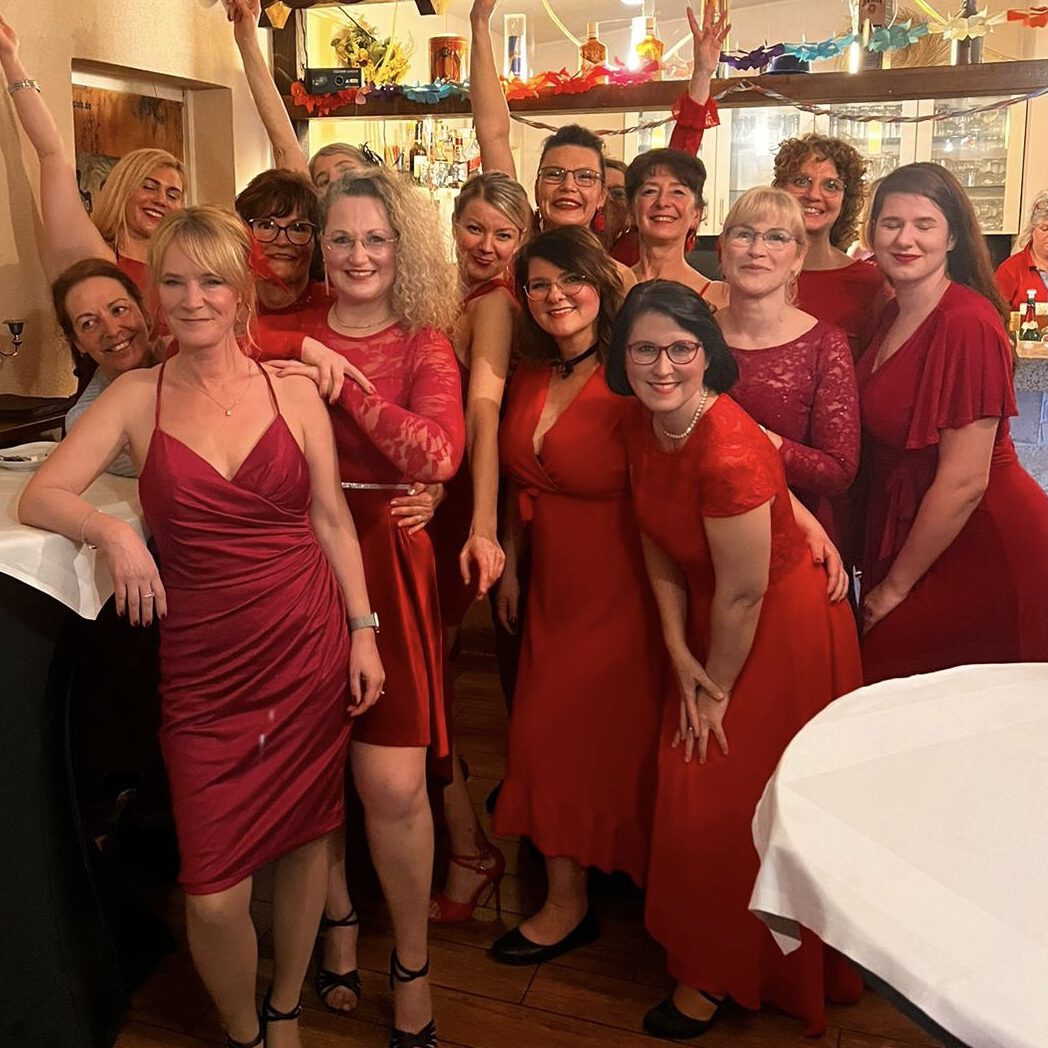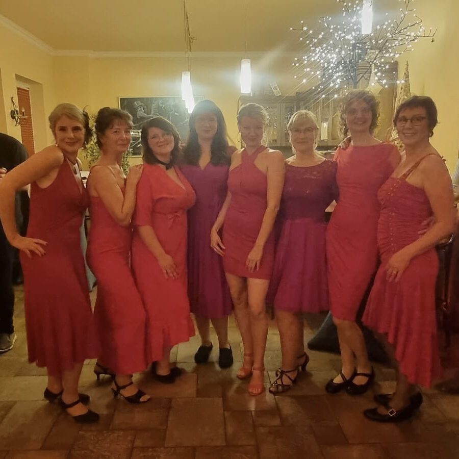 Die Jüngste ist derzeit 19 und die Älteste 74! Und eigentlich ist damit schon alles gesagt, was mir wichtig ist! Wir sind eine bunt zusammen gewürfelte Ladiestruppe, die Lust hat aufzutreten, egal wie alt, groß, klein oder viereckig sie sind. Wir wollen vielfalt zeigen, keine Perfektion und einfach nur den Spaß am Tanzen und Auftreten. Mittlerweile sind einige schon zu Freundinnen geworden, andere kommen gerade erst neu dazu. Unsere Herausforderung: innerhalb von 10h ein komplett neues Genre zu erlernen und das dann am Ende auf unserem Tanzabschlussabend zu presentieren. 2023 begannen wir mit den Schritten der 20er Jahre, dann ging es weiter mit Tango Argentino, Salsa und Lyrical Dance. Derzeit sind wir in die Welt des Flamencos eingetaucht und wow – der hat es so richtig in sich.